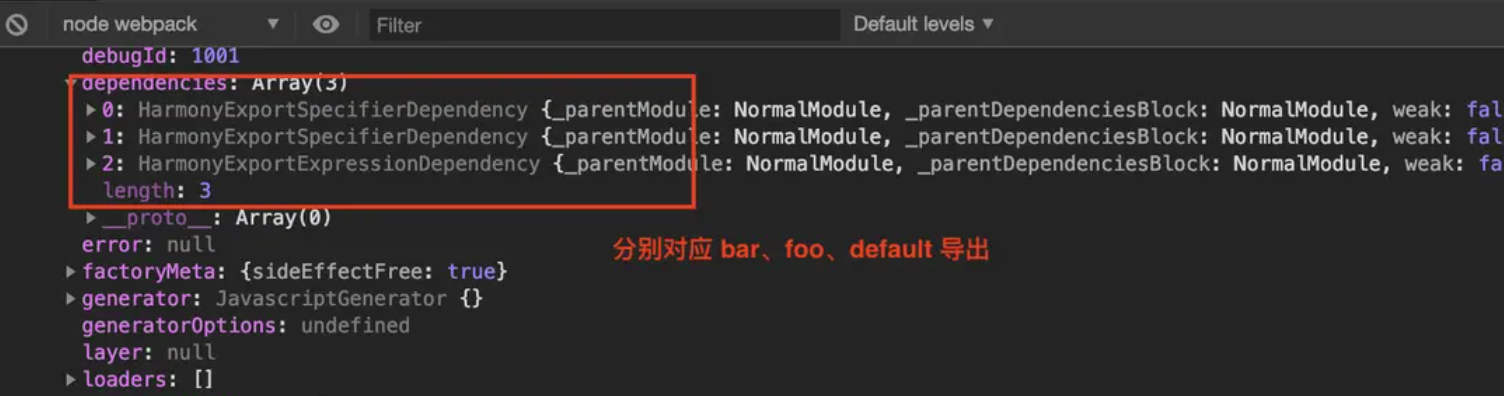 在编译结束之后会触发回调,这时会遍历 dependencies 数组,找到所有的导出对象转换为 ExportInfo 记录在 ModuleGraph 中,至此 webpack 可以直接访问各模块的导出值.