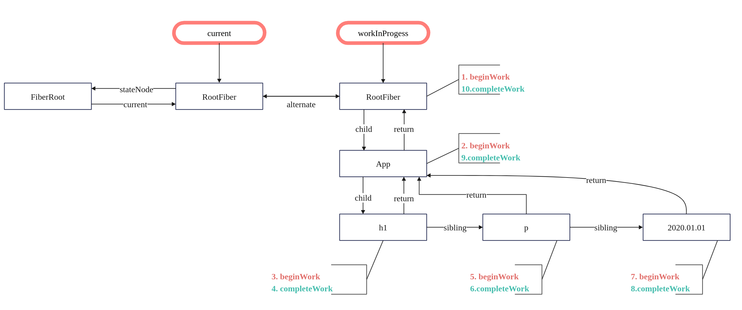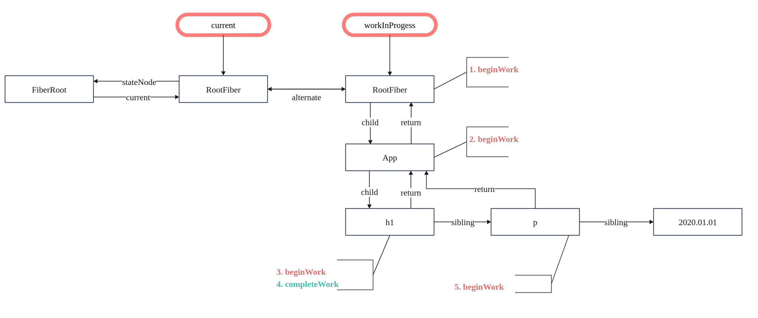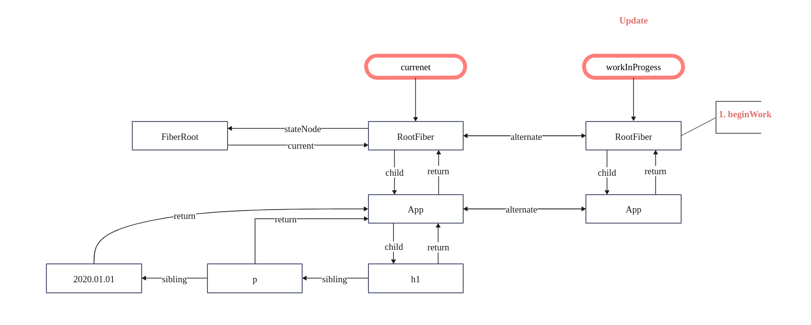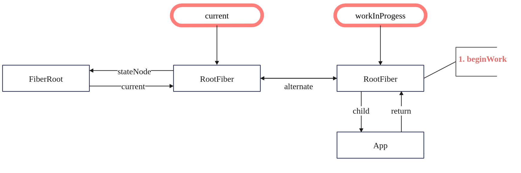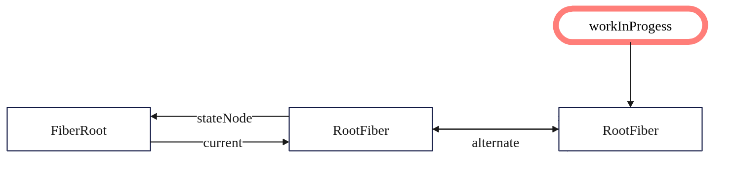 // workInProgress 通过alternate属性链接原始的 FiberRoot 对象
