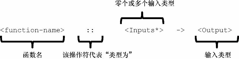 Haskell中定义函数的符号。该符号先给出了函数的名称,随后用一个操作符来设置函数的输入和输出类型