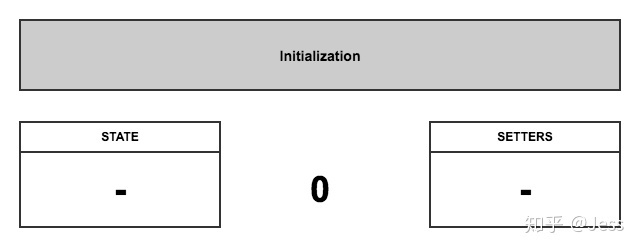 创建两个空数组,分别用来存放 setters 和 state,将 指针 指到 0 的位置: