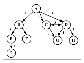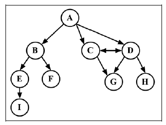 • 路径是顶点v1, v2, …, vk 的一个连续序列,其中vi 和vi+1 是相邻的。以上一示意图中的图为例,其中包含路径A B E I 和A C D G。