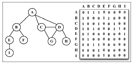 每个节点都和一个整数相关联,该整数将作为数组的索引。我们用一个二维数组来表示顶点之间的连接。